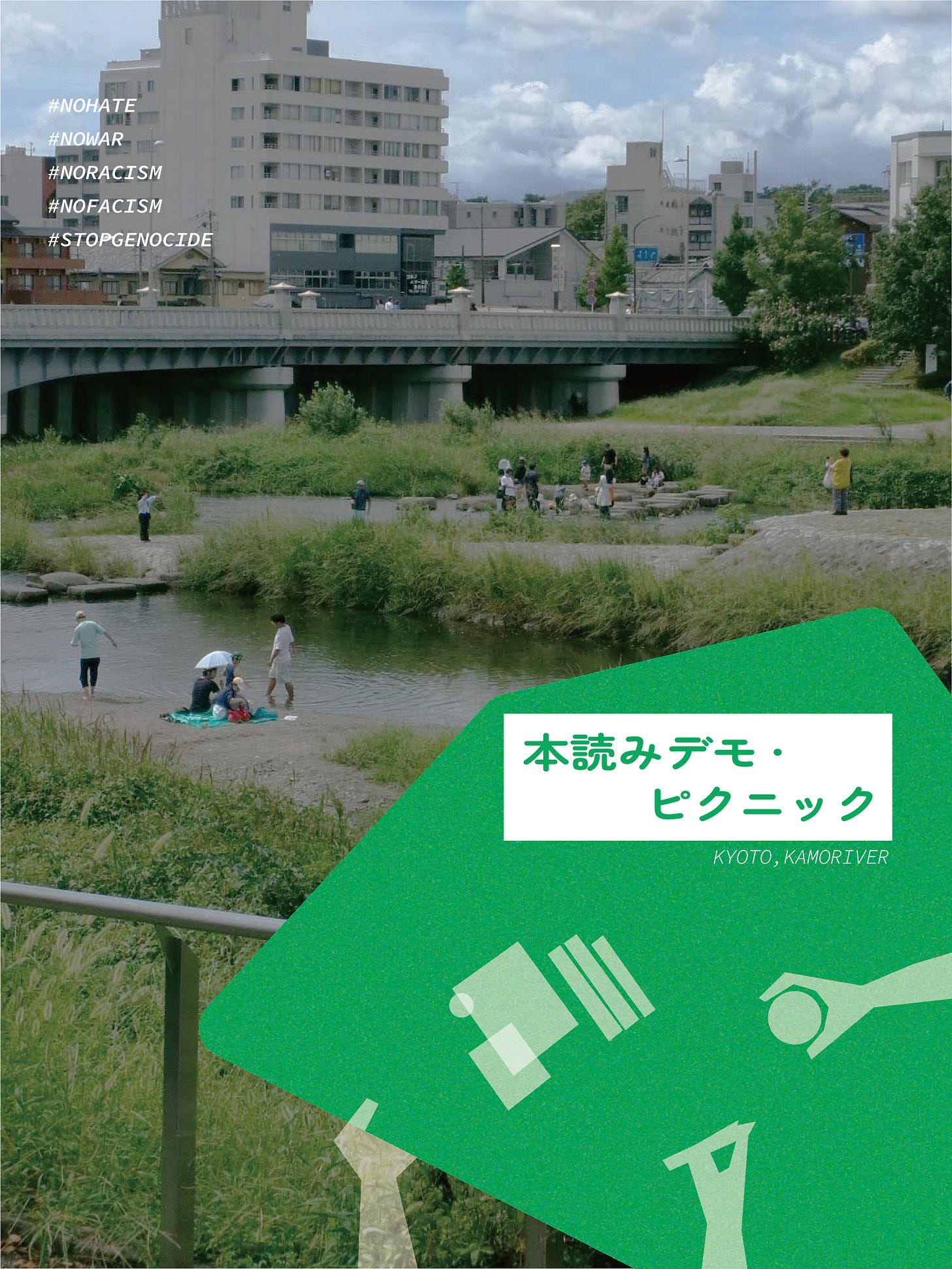 京都府知事選挙の前日4/4(土)、二条の店舗を飛び出して鴨川沿いにて「本読みデモ・ピクニック」を開催します。岐阜でも開催していた「本読みデモ」をしながらピクニックをする会です。停戦発効後も占領と入植が未だ続くパレスチナに関する本や、植民地主義や家父長制に関する本、憲法についての本、社会運動に関する本、政治や民主主義に関する本など、自分が興味のある/抵抗したいと感じているイシューに関する本を各々持ち寄って、そのテーマについて誰かと話し合ったり、ただ本を読む時間を共有しあったりする会にできればと思います。